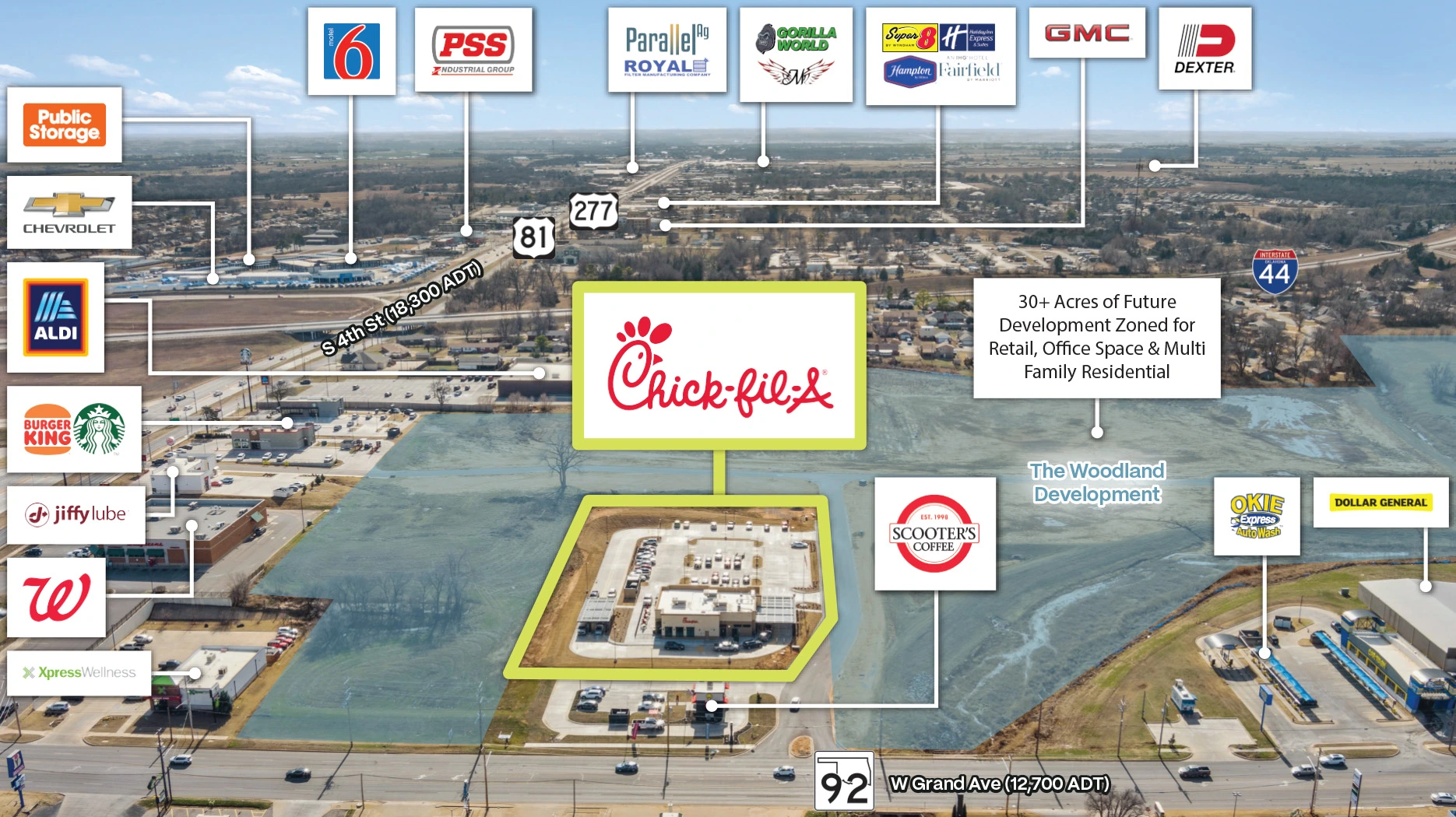- Prominent Retail Location Adjacent to the Intersection of W Grand Ave & US 277 (31,000 Combined ADT)